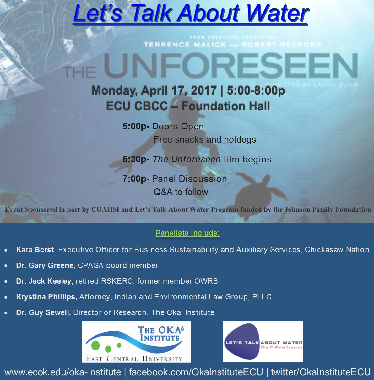Let’s Talk About Water- Film and Water EventEast Central University, OK April 17, 2017 – Foundation Hall